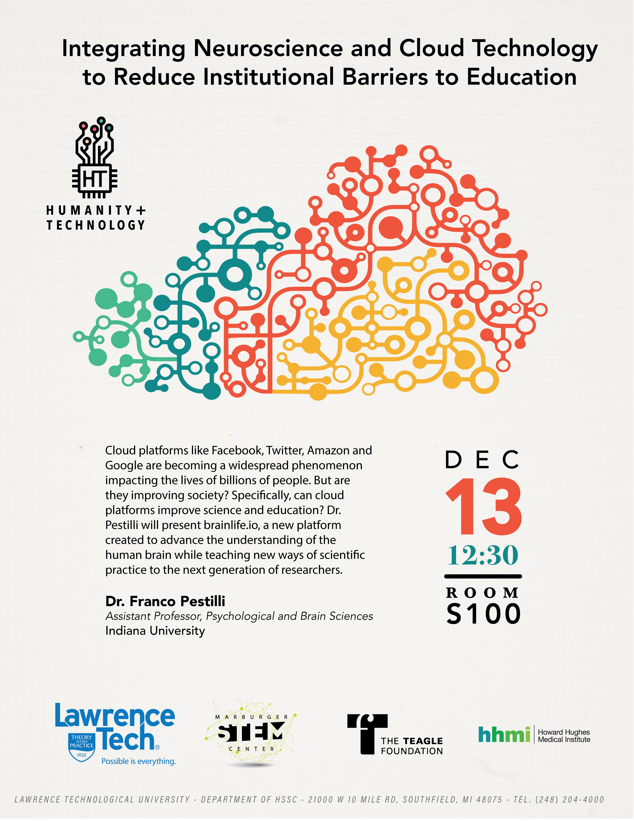 Cloud platforms like Facebook, Twitter, Amazon, and Google are becoming a widespread phenomenon impacting the lives of billions of people. But are they improving society? Specifically, can cloud platforms improve science and education? Dr. Pestilli will present brainlife.io, a new platform created to advance the understanding of the human brain while teaching new ways of scientific practice to the next generation of researchers.